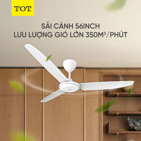 - Sải cánh lớn (56inch=1420mm) cho lưu lượng gió lớn. Cánh quạt được thiết kế đường vân độc đáo, tăng thêm tính thẩm mỹ cho sản phẩm.