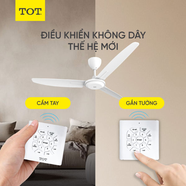 - Điều khiển gắn tường không dây Thế hệ MỚI. Dễ dàng điều khiển trong bán kính 10m