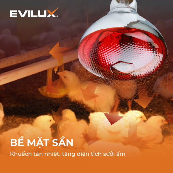 - Thiết kế bóng với bề mặt Bề mặt sần - khúc xạ ánh sáng, khuếch tán nhiệt, tăng diện tích sưởi ấm
