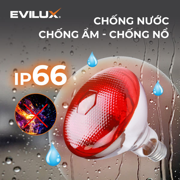 - Bóng chống nước, chống ẩm chống nổ do có chỉ số bảo vệ IP66.